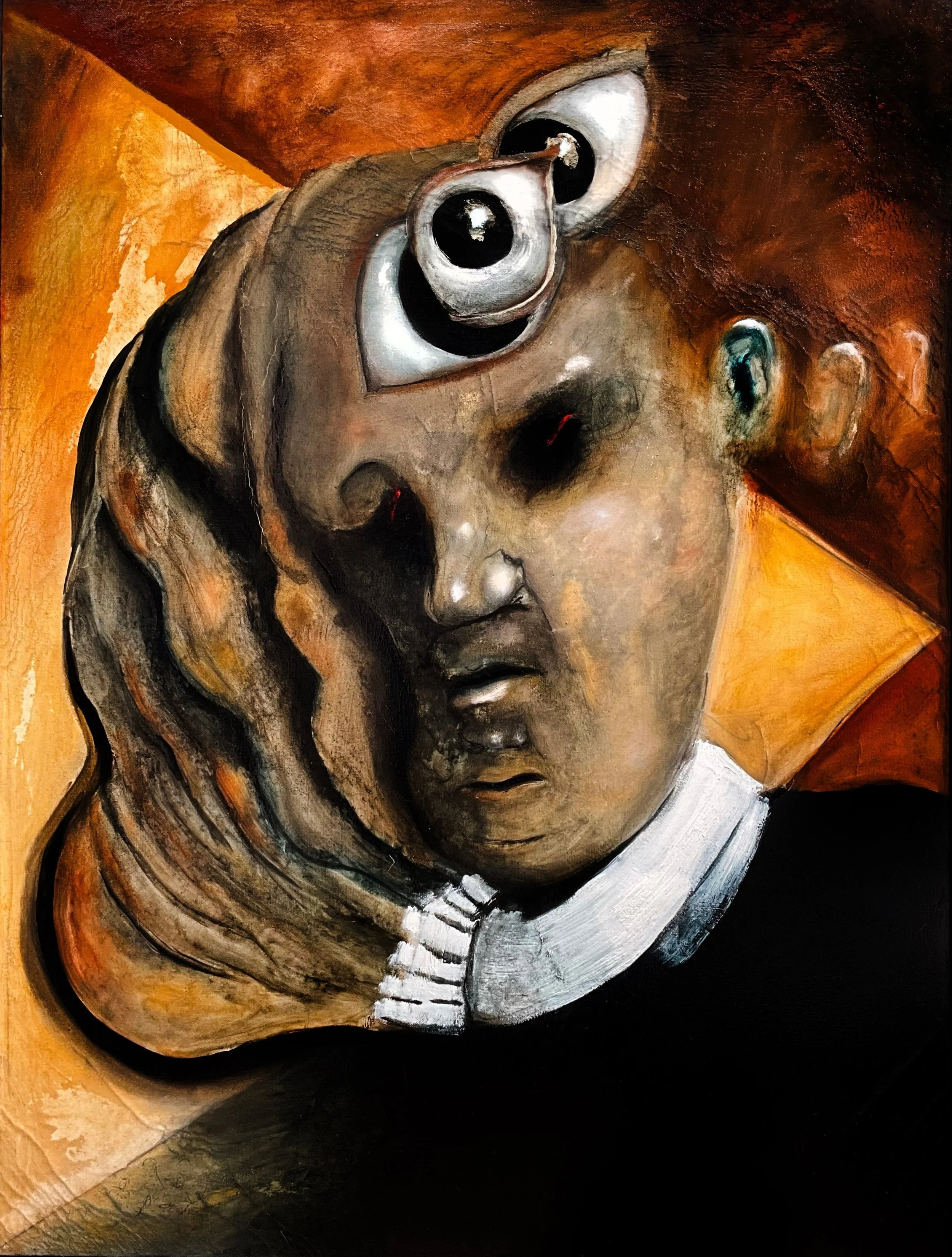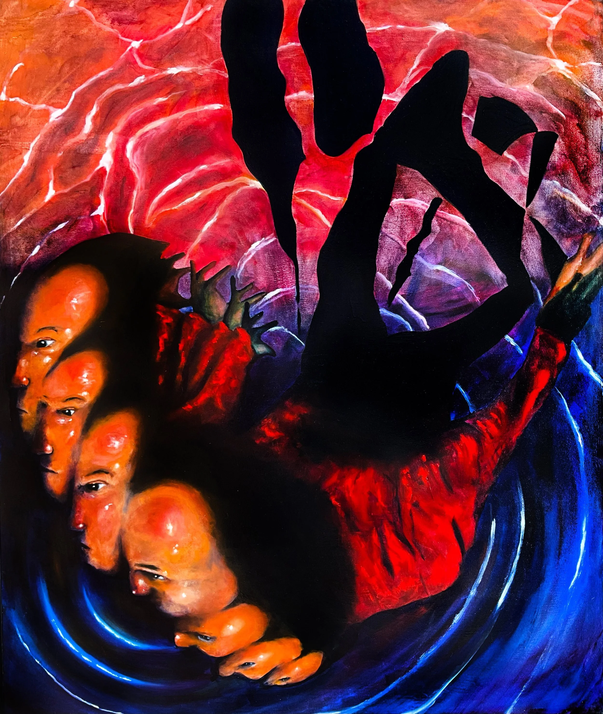 By the final works, the self is no longer simply surviving, but actively reconstituting. The compressed body becomes a new being entirely. Instinct and abstraction collide to form something new and more whole. Unbalanced horizon lines introduce a sense of pulse, of becoming. The paintings do not resolve neatly, but they gesture toward a threshold where a new self forms.